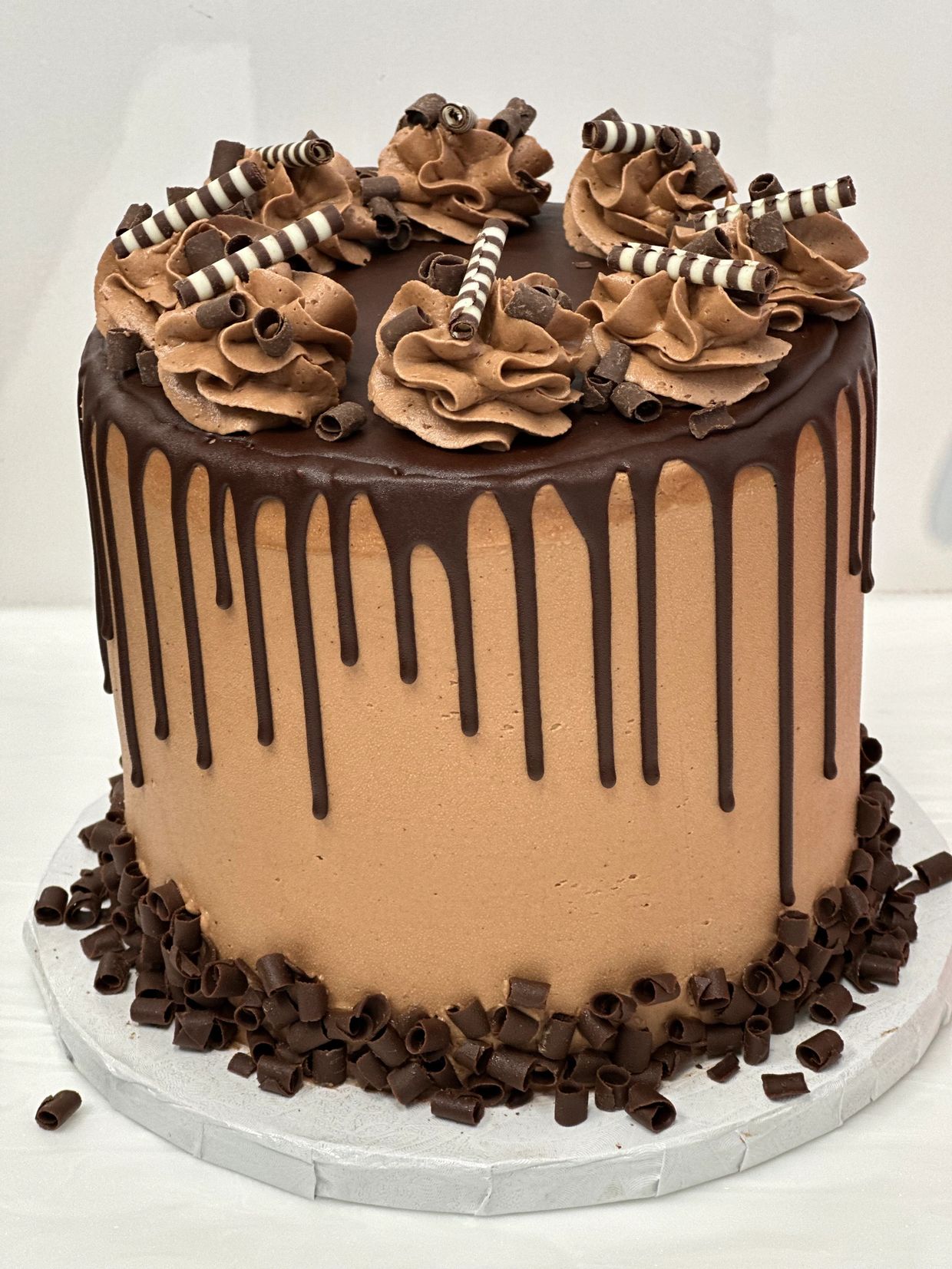 Decadence at its finest—our Triple Chocolate Bliss Cake is made with layers of moist, dark chocolate cake, filled with silky smooth chocolate ganache, and frosted in rich, creamy chocolate buttercream. Finished with a glossy ganache drip and chocolate curls, this cake is a chocoholic’s dream come true.